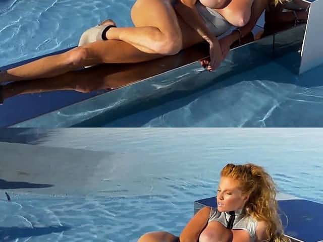 Voluptuous babe with jaw dropping tits Simony Diamond is making love in the pool