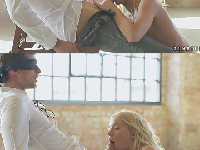 Erotic dick sucking in a dark room by blonde model Selvaggia Babe