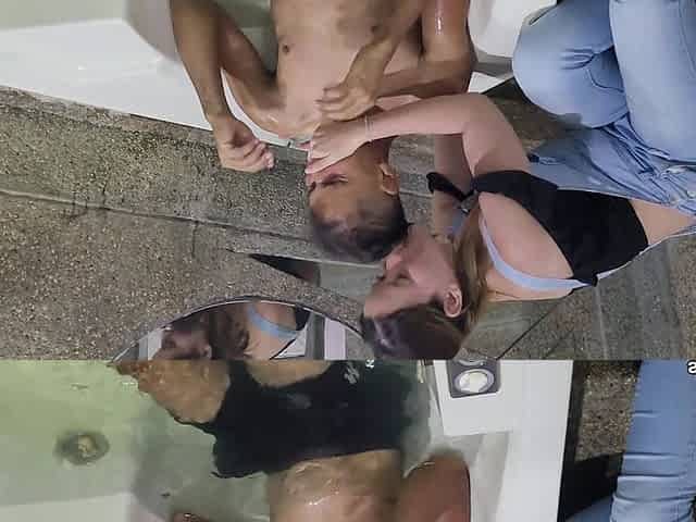 Black british cfnm jerks off and sucks her naked sub