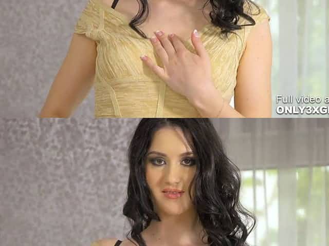Stunning brunette Mia Evans one on one with her dildo