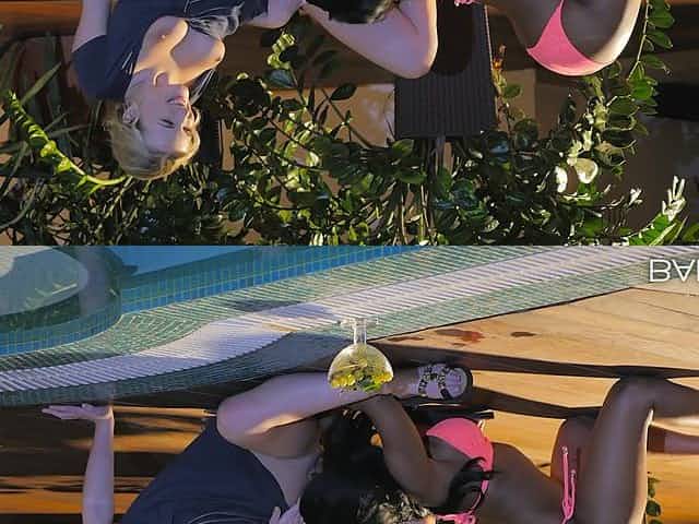Look at these babes scissoring by the pool