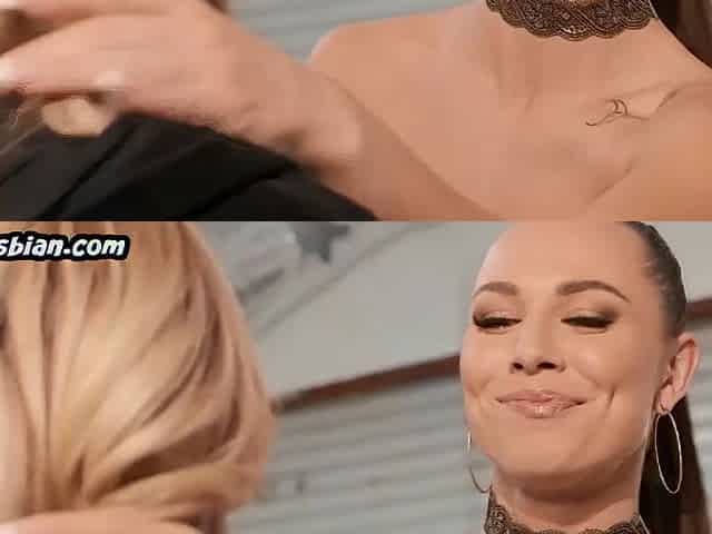 Glamorous dyke with pierced tits seduced at casting