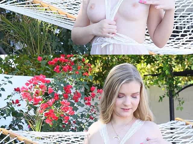 Long-haired blonde Harlow seduces in her solo show