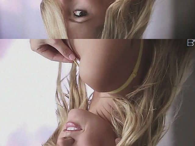 Blonde woman with ample breasts was wearing erotic lingerie and playing with a pink sex toy