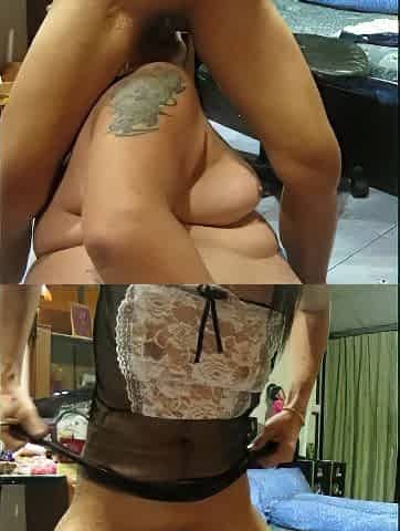 Red haired woman with large bazookas is wearing erotic underware whilst using a bang machine