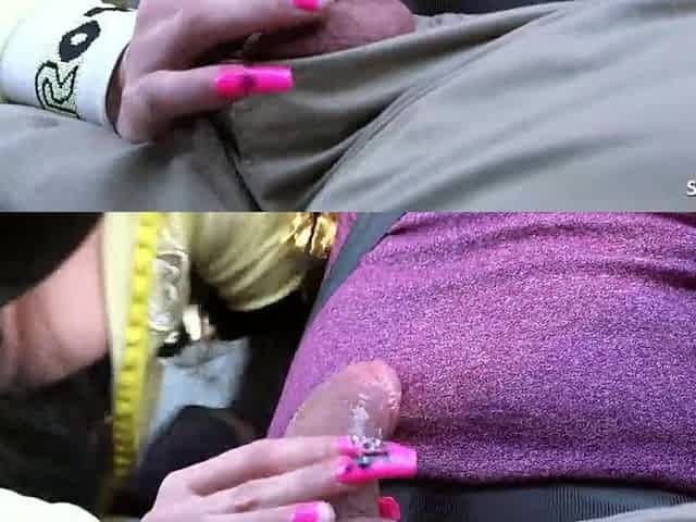 Obscene Slut Pick Up by old Man and give him a Nyon Tugjob to Thanks him in Car during the time that driving