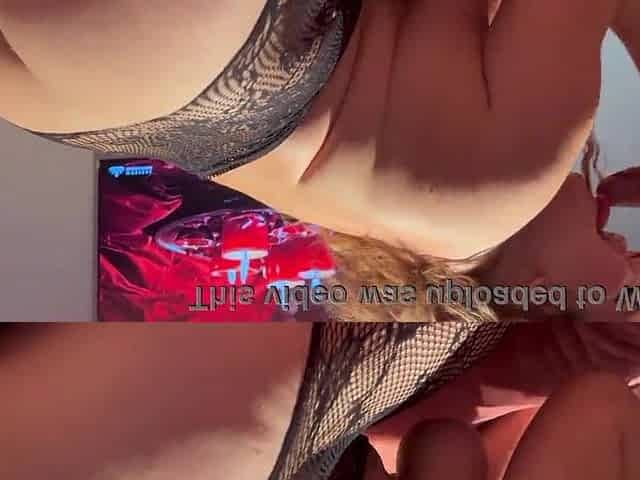 Plump redhead enjoying watching porn.