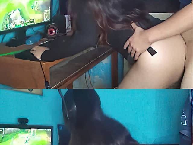 Dark-Haired with long hair is getting banged from the back while toying her dearest game