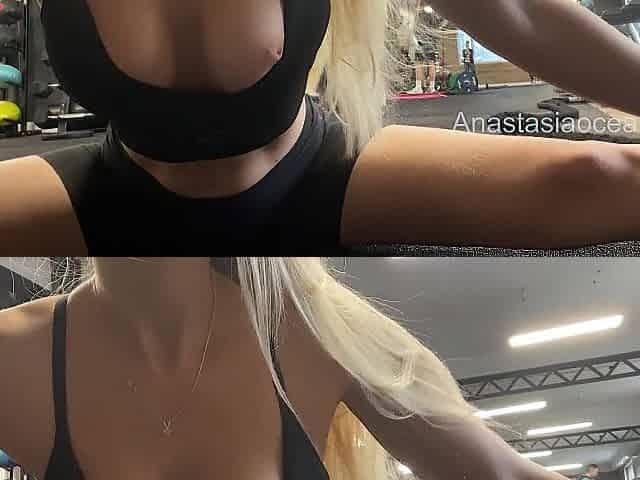Flashing titties in public.Topless stretching in gym full of people.