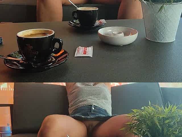 Risky upskirt teasing with no panties in public places