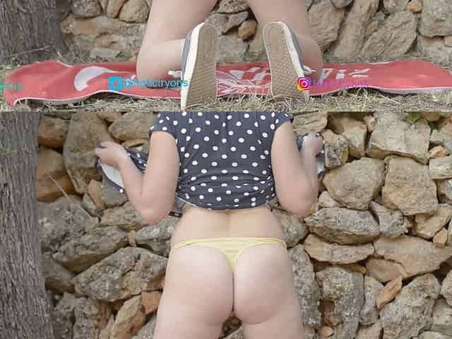 Naughty mature exhibitionist takes a stroll through the countryside, flashing her ass for everyone to see!