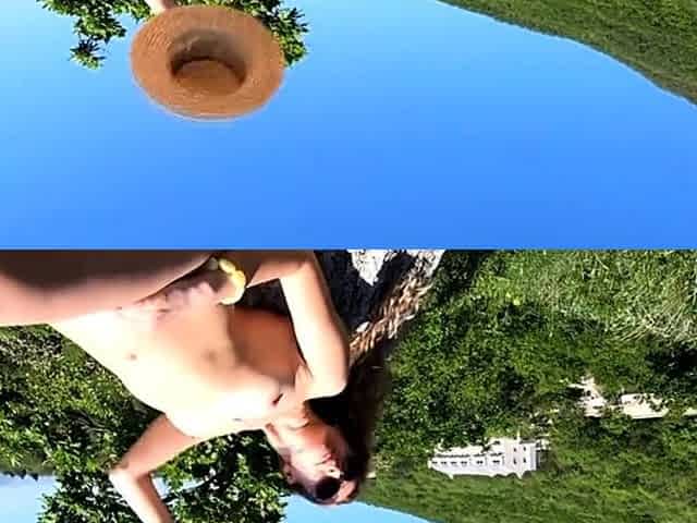 Exhibitionist girl spins hoop in Russian field