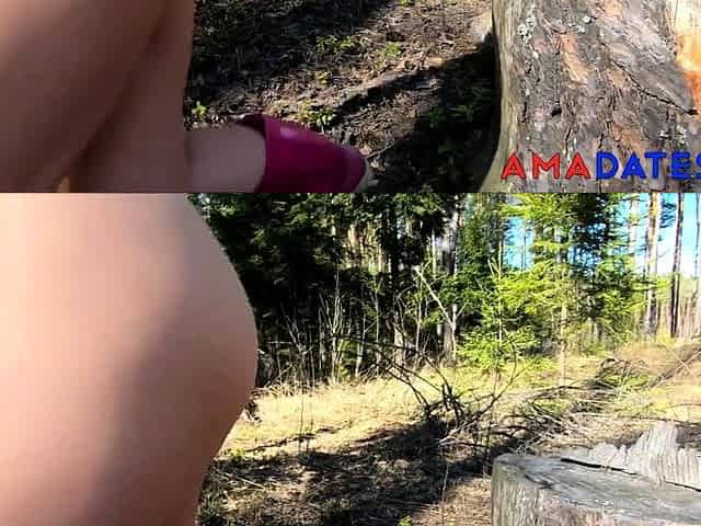 Naked forest walk through logs and stumps Exhibitionist Miss