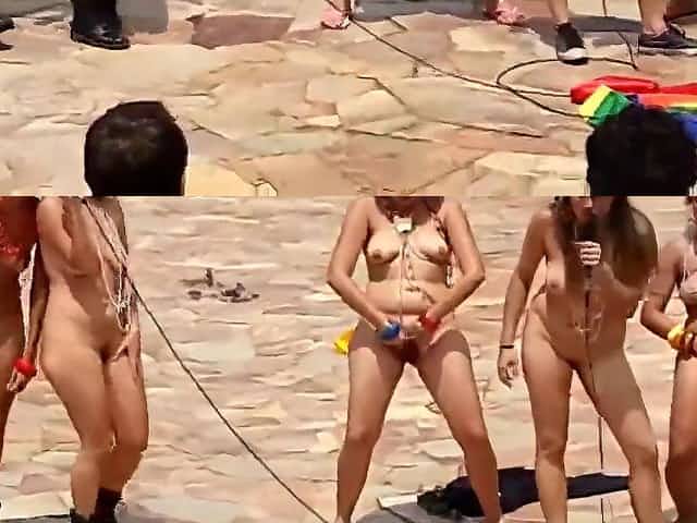 Naked singing and dancing girls put on a public show