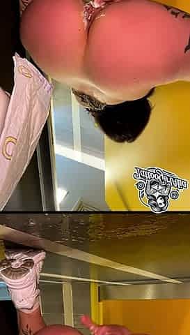 The majority risky squirting in the dudes's restroom with the door open at McDonald's
