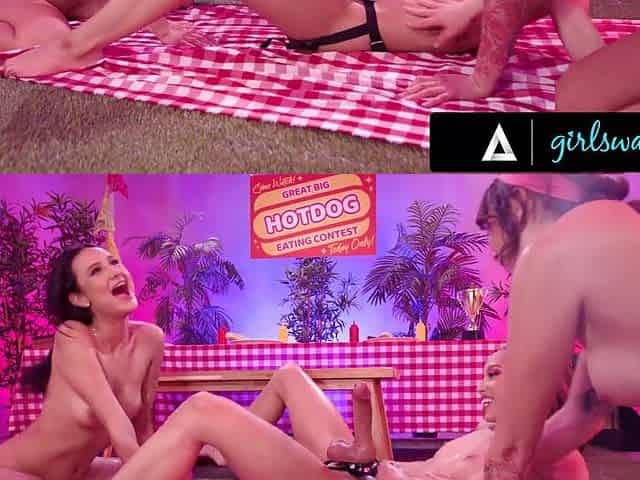 Erotic Surprise: Alexis Tae Gives Eliza Ibarra a Thrilling Threesome Experience with a Massive Strapon!