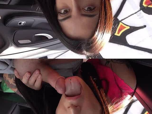 Outdoor blowjob from sexy brunette Alisa G White is the ultimate experience
