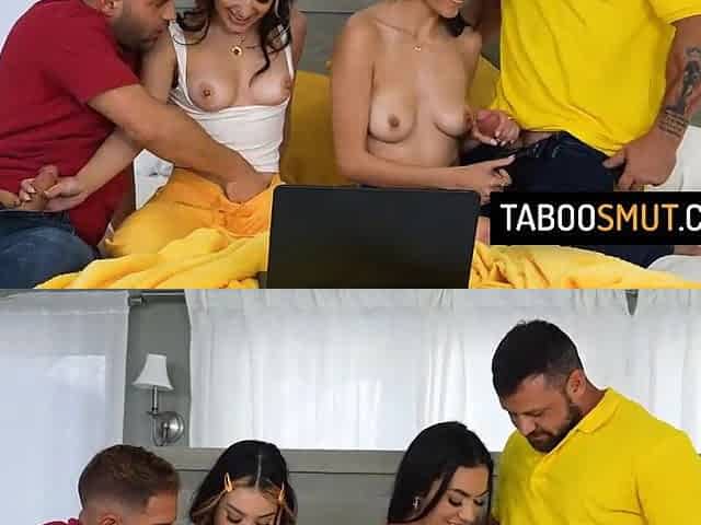 Hawt teens have their 1st raunchy experience with their stepfathers