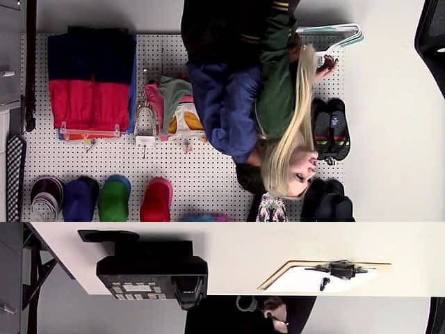 Young blonde thief busted and exploited by a hung mall cop