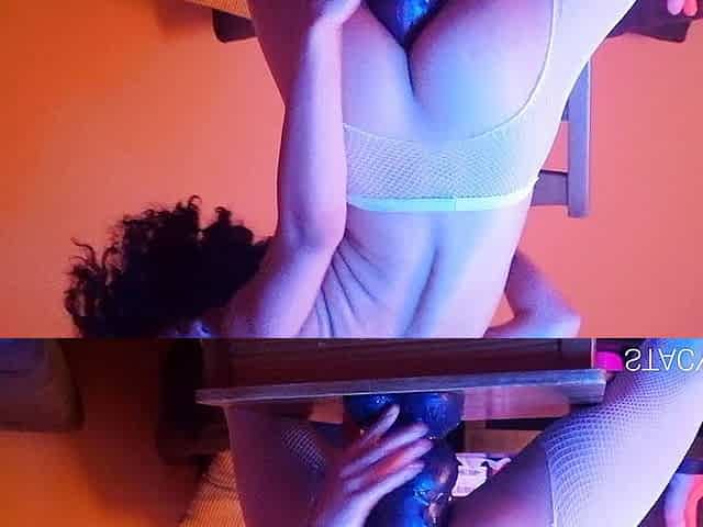 Slutty StacyBloom rides dragon dildo and anal orgasm