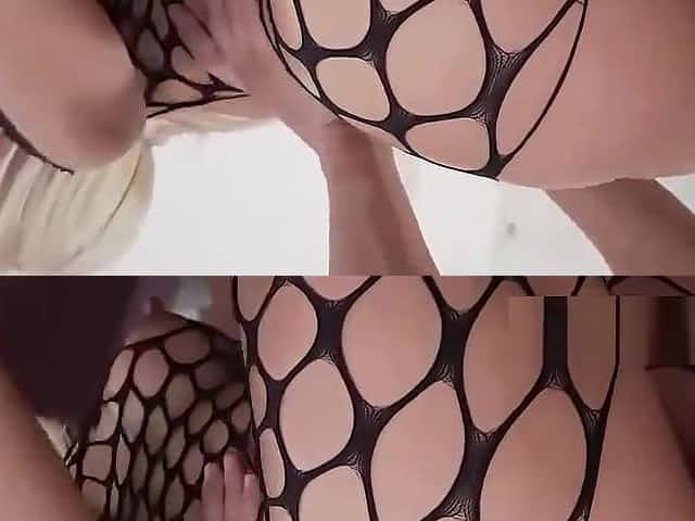 Handsome blonde teen in black panties fingers her fish lips