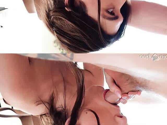 Pigtailed teen girl Brandi Braids gives a gorgeous blowjob in close-up
