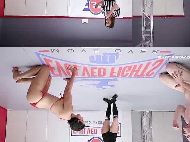 Breasty Penny Barber undressed wrestling domination face sitting the loser