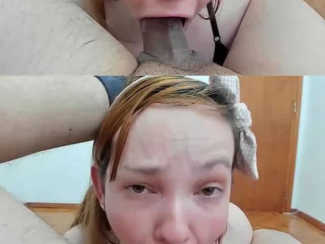18plus redhead sucking off camera guy during photoshoot