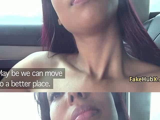 Fake agent fucks brunette in car in public