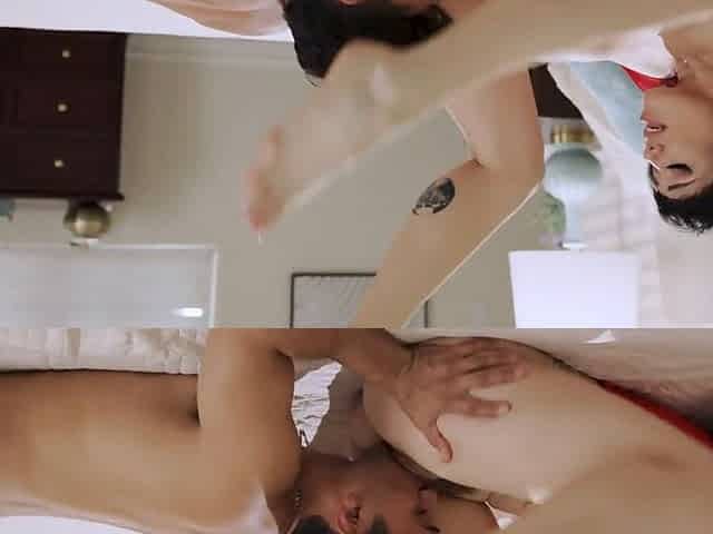 Couple fucking with busty brunette Sasha Pearl in panties