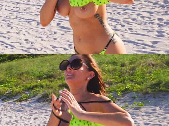 Gorgeous brunette teasing her boyfriend on the beach - Ally