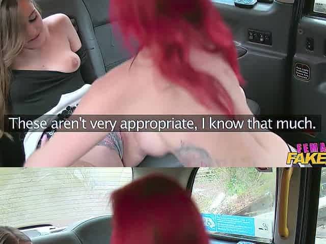 Female Fake Taxi Slutty breasty women in taxi lesbo backseat orgasms
