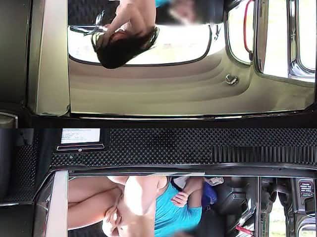 Brunette pays fake taxi fare with sex in public