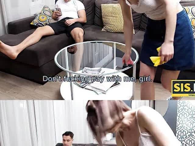Large ass stepsister keeps getting stuck during the time that doing chores