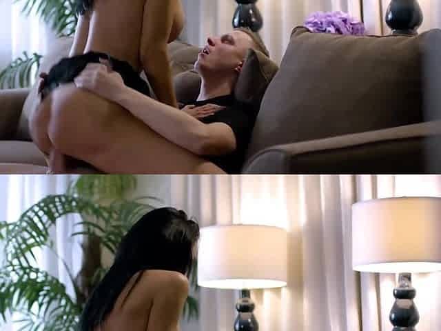 Hot Latina Stepsister rides the guy's cock on the sofa