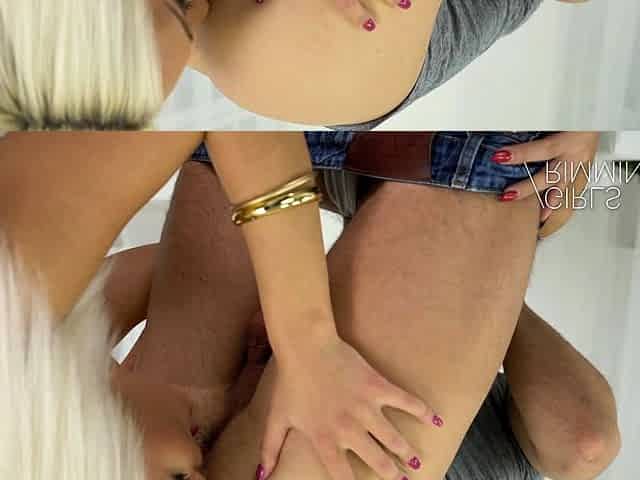 After a Lesbian Foreplay a Hot Slim Blonde Teen Shares Her BF's Dong With Her Sexy Brunette Stepmom