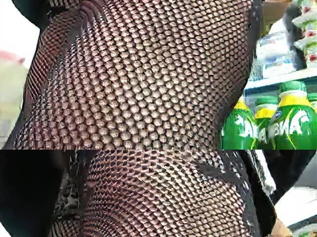Fashion fishnet stockings upskirt in market