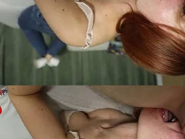 Nice little redhead female sucks a fat cock and ends up with a massive cumshot