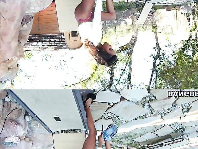 Lesbians BBW having fun outdoors on the grass. Mature milf doggystyle in mini bikini shakes big tits and fat butt.