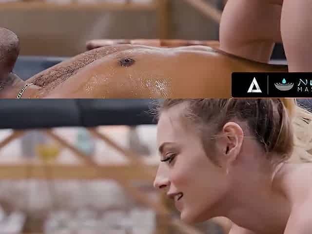 Jillian Janson sucking masseuse’s fat cock