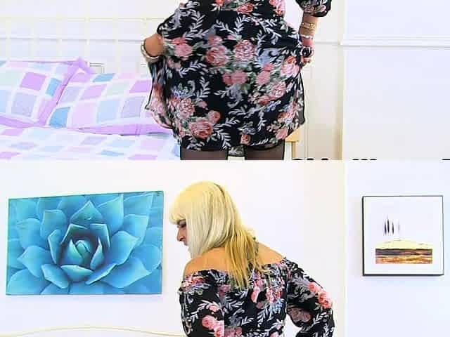 Horny amateur granny in stockings toys around with her ass