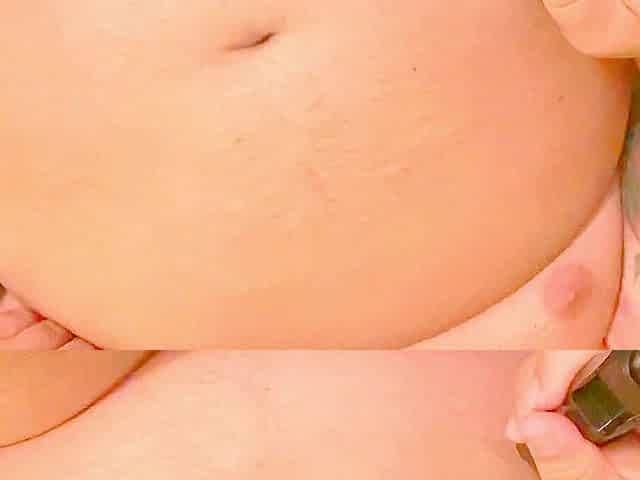My fat pussy masturbating on one leg while jerking off my ma