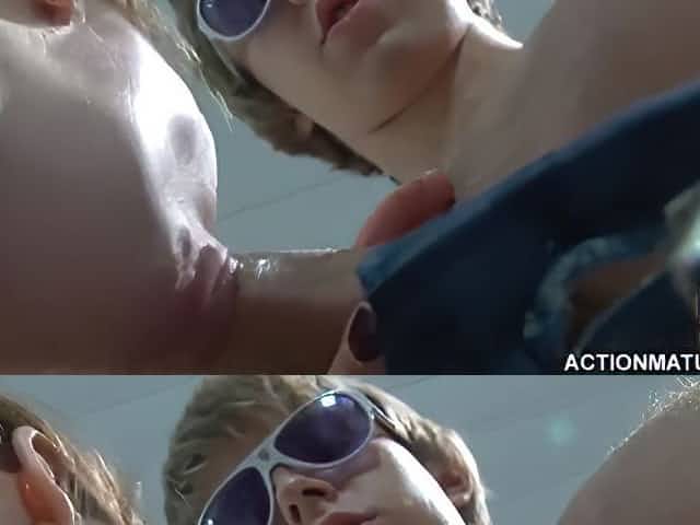 Big tits mature showing upskirt with no panties as she teases
