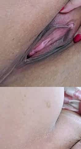 Extreme close up of me sucking my nipples and clit with a vacuum pump