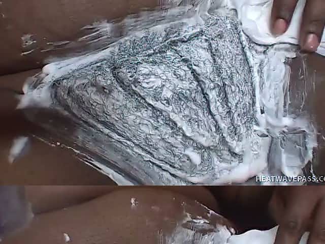 Horny guy shaves hairy pussy of his fat black chick