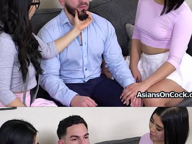 Asian teens sharing male dolls big dick