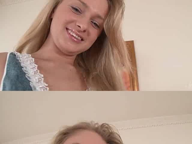 Long blonde hair teen sucking fat dick and dildoing her twat
