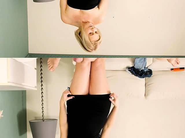 Cute gal with small tits spins on the sofa as fat BBC tears her asshole apart