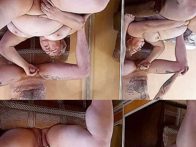 fat woman with large milk cans masturbting with fingers