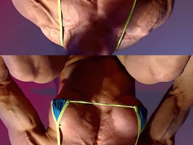 Sexy female bodybuilder shows off her big muscles and big tits
